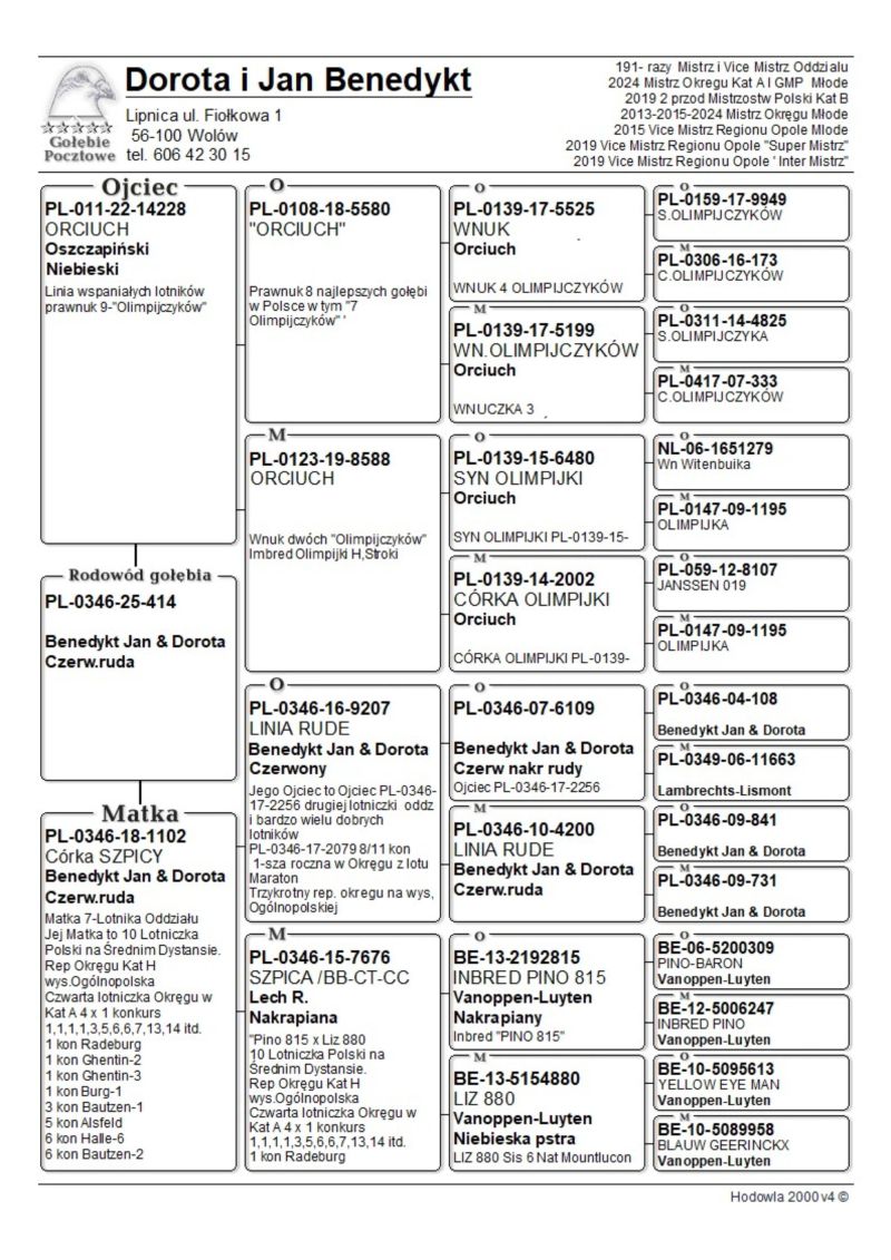 PL-0346-25-414 oryg. Benedykt Jan i Dorota 2024r. Mistrz Okręgu kat A i GMP Młode