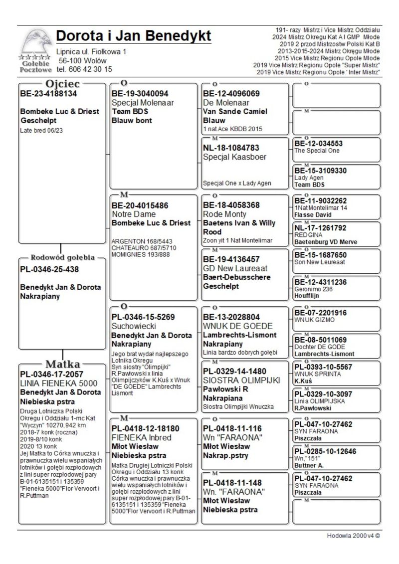 PL-0346-25-438 oryg. Benedykt Jan i Dorota 2024r. Mistrz Okręgu kat A i GMP Młode