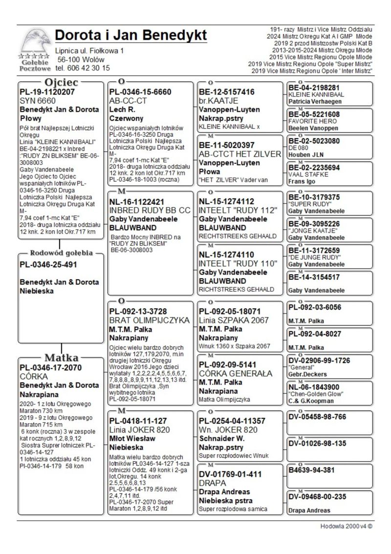 PL-0346-25-584 oryg. Benedykt Jan i Dorota 2024r. Mistrz Okręgu kat A i GMP Młode