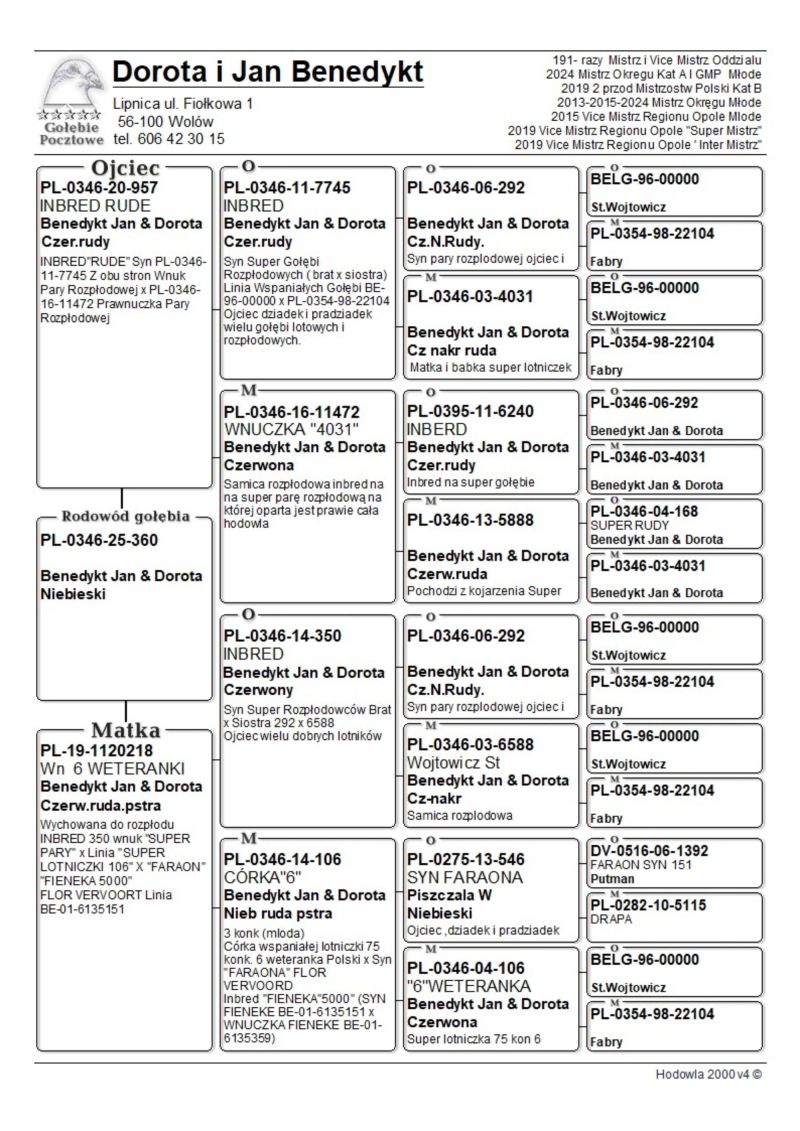 PL-0346-25-360 oryg. Benedykt Jan i Dorota 2024r. Mistrz Okręgu kat A i GMP Młode