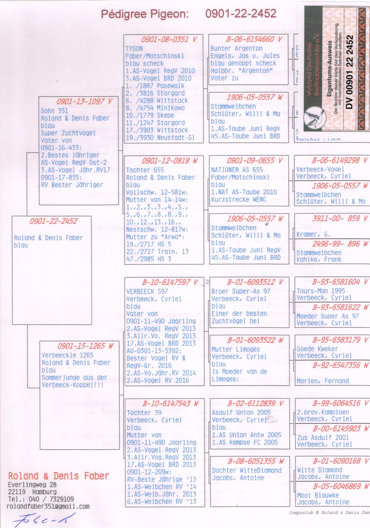 Ojciec – Syn Tysona, super samiec rozpłodowy, ojciec wielu lotników klasy RV. Wnuk 655