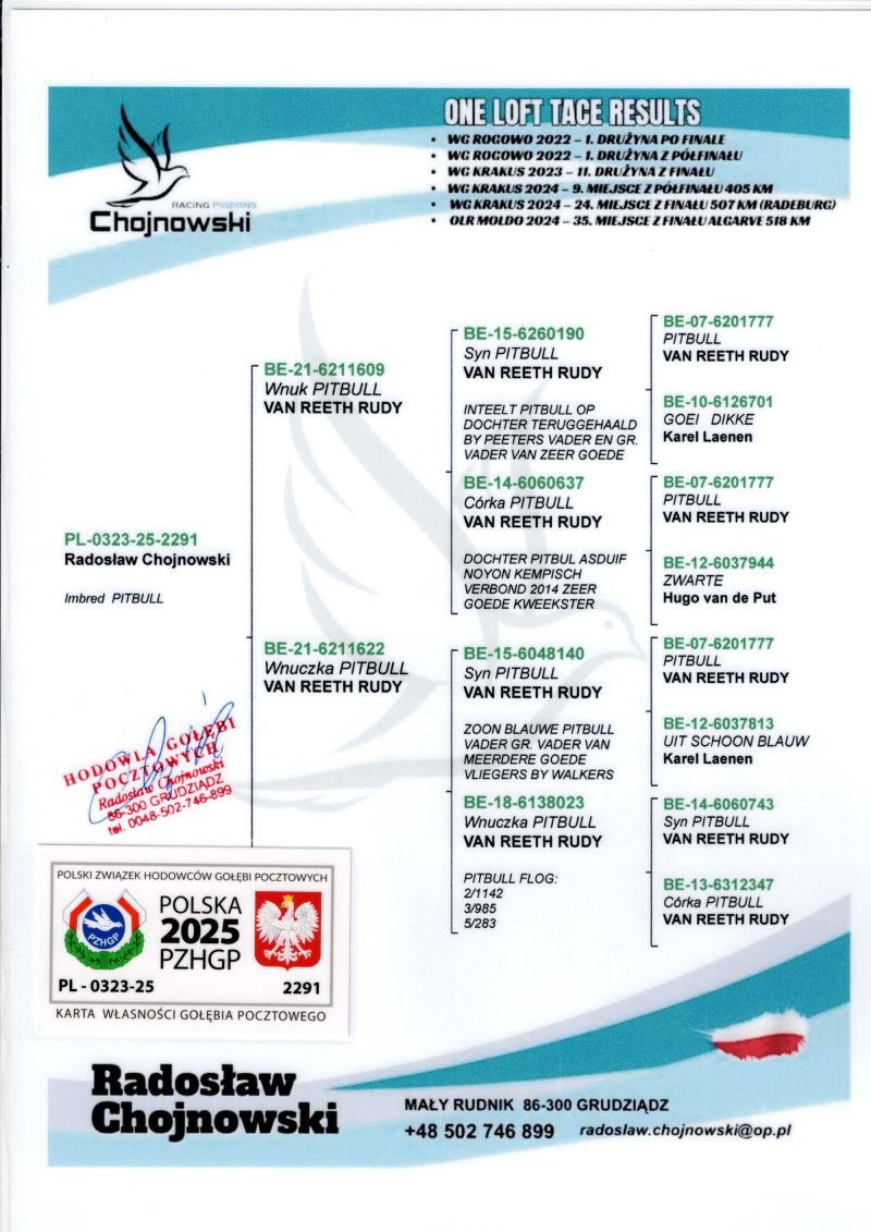 Płeć: młody gołąb Hodowca - rasa: Radosław Chojnowski Zakończenie: 14.11.2025 godz. 22:22
