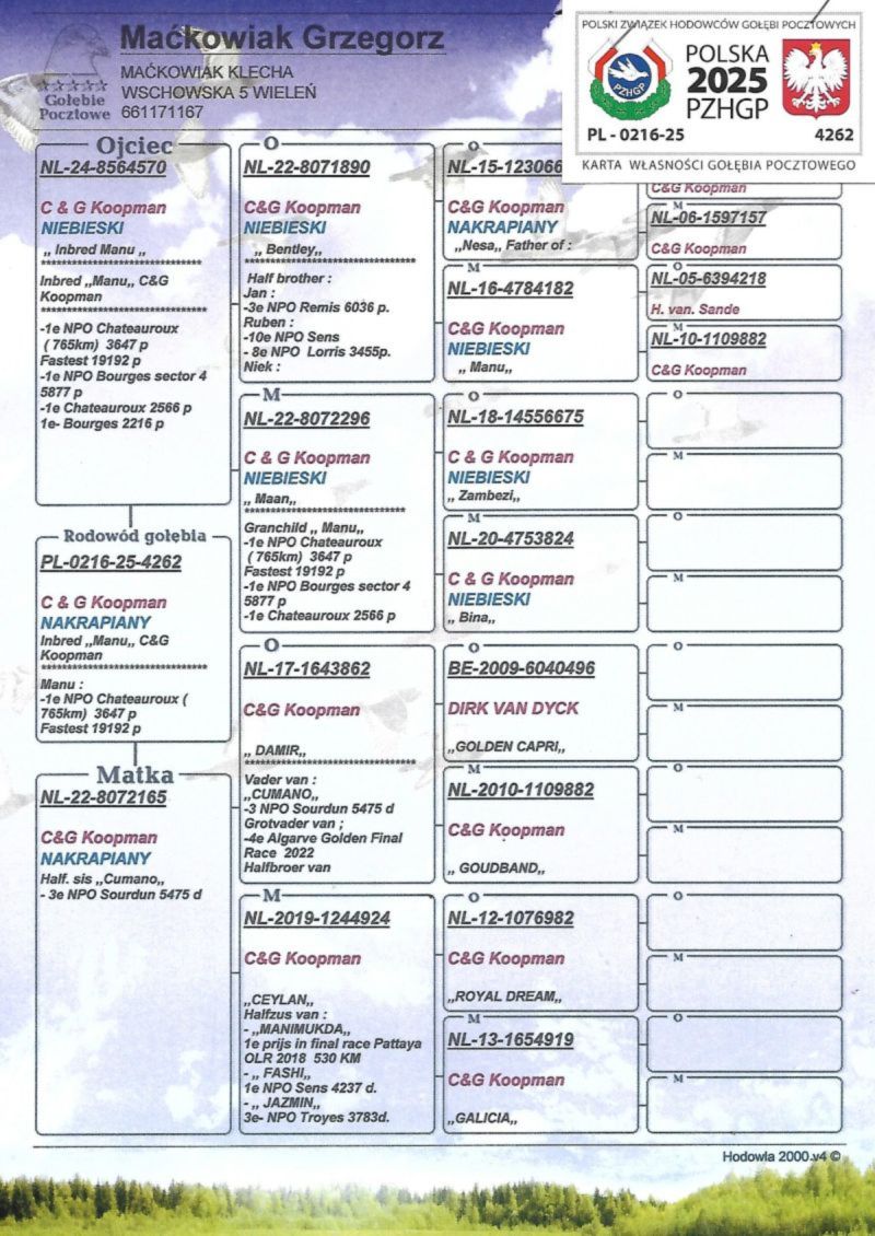 Płeć: młody gołąb Hodowca - rasa: G.M Zakończenie: 17.11.2025 godz. 19:58