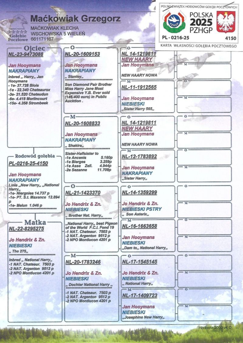 PL-0216-25-4150 Inbred Harry Jan Hooymans linia National Harry ostatnie sztuki