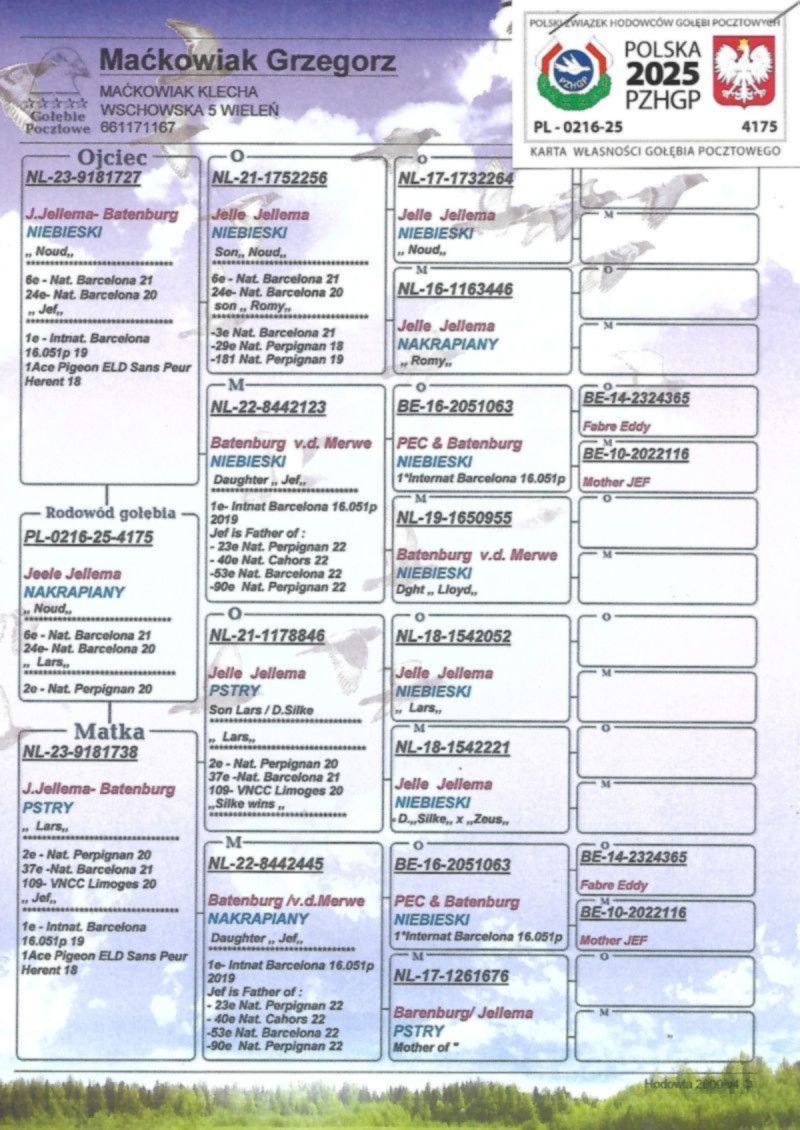 Płeć: młody gołąb Hodowca - rasa: G.M Zakończenie: 17.11.2025 godz. 19:36