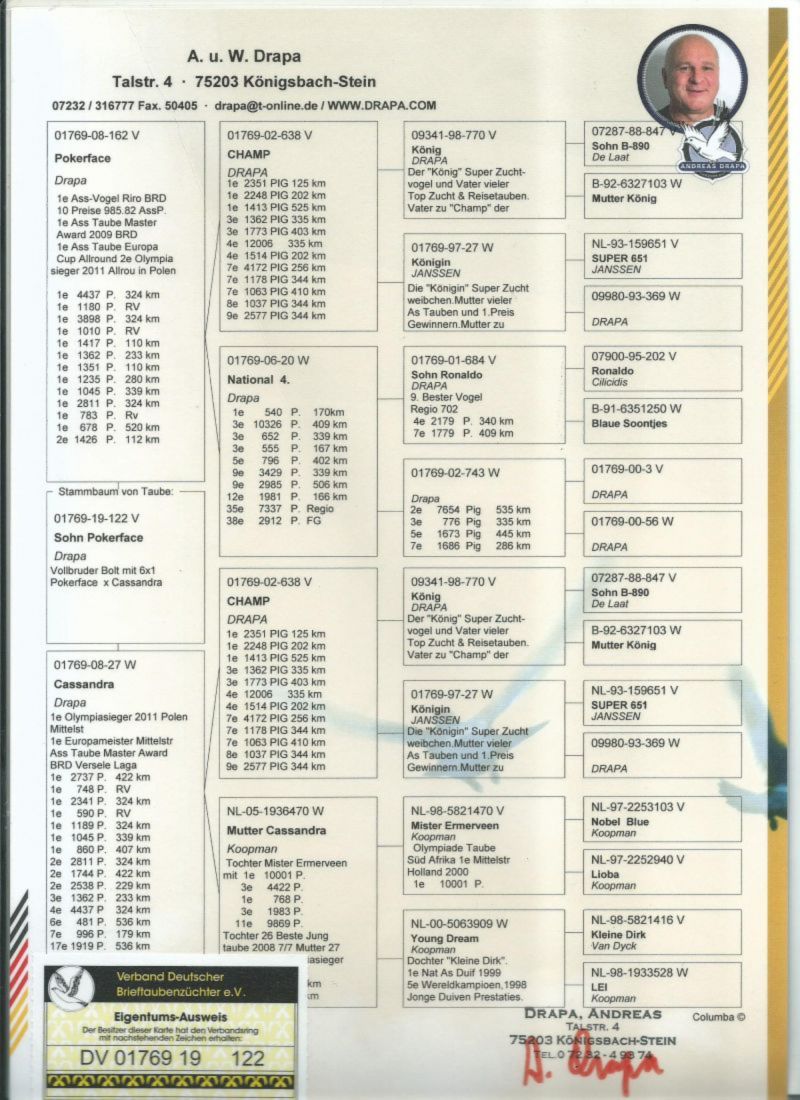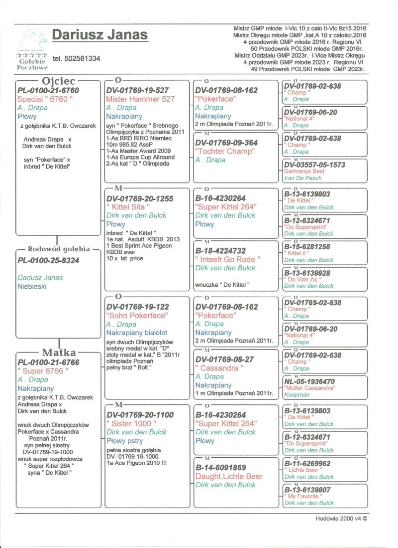 Oryginalny gołąb z hodowli Dariusz Janas . Szczegóły pochodzenia w rodowodzie . Więcej informacji pod nr. tel. 502581334 . oferowany gołąb to prawdopodobnie samiec ... transport firmą kurierską