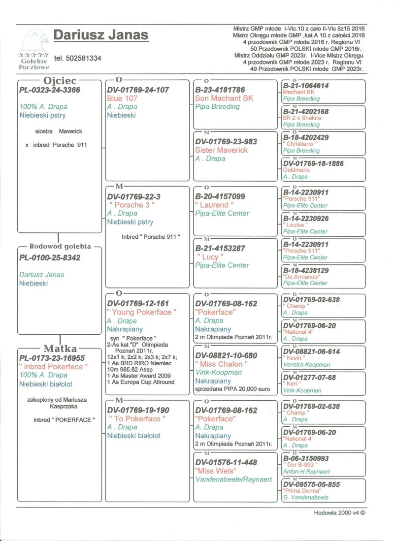 Oryginalny gołąb z hodowli Dariusz Janas . Szczegóły pochodzenia w rodowodzie . Więcej informacji pod nr. tel. 502581334 . oferowany gołąb to prawdopodobnie samica ... transport firmą kurierską