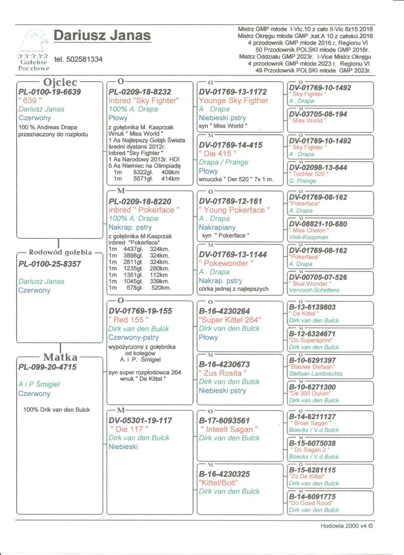Oryginalny gołąb z hodowli Dariusz Janas . Szczegóły pochodzenia w rodowodzie . Więcej informacji pod nr. tel. 502581334 . oferowany gołąb to prawdopodobnie samiec ... transport firmą kurierską