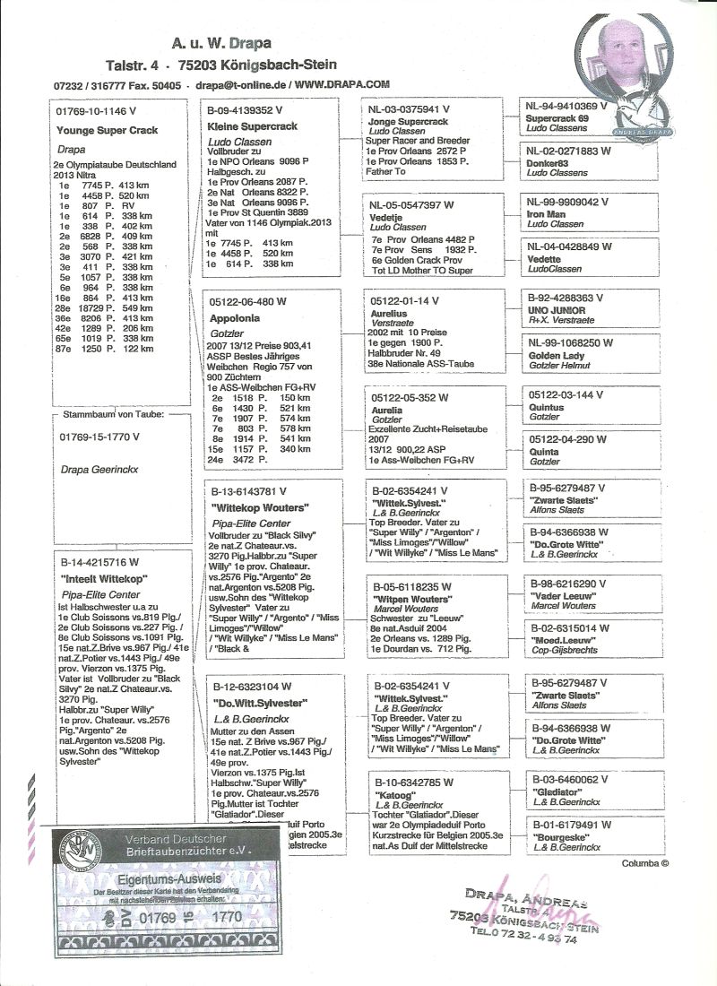 Oryginalny gołąb z hodowli Dariusz Janas . Szczegóły pochodzenia w rodowodzie . Więcej informacji pod nr. tel. 502581334 . oferowany gołąb to prawdopodobnie samica ... transport firmą kurierską