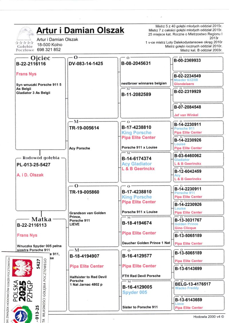 Płeć: młody gołąb Hodowca - rasa: Oryg. Artur i Damian Olszak Zakończenie: 17.11.2025 godz. 19:06