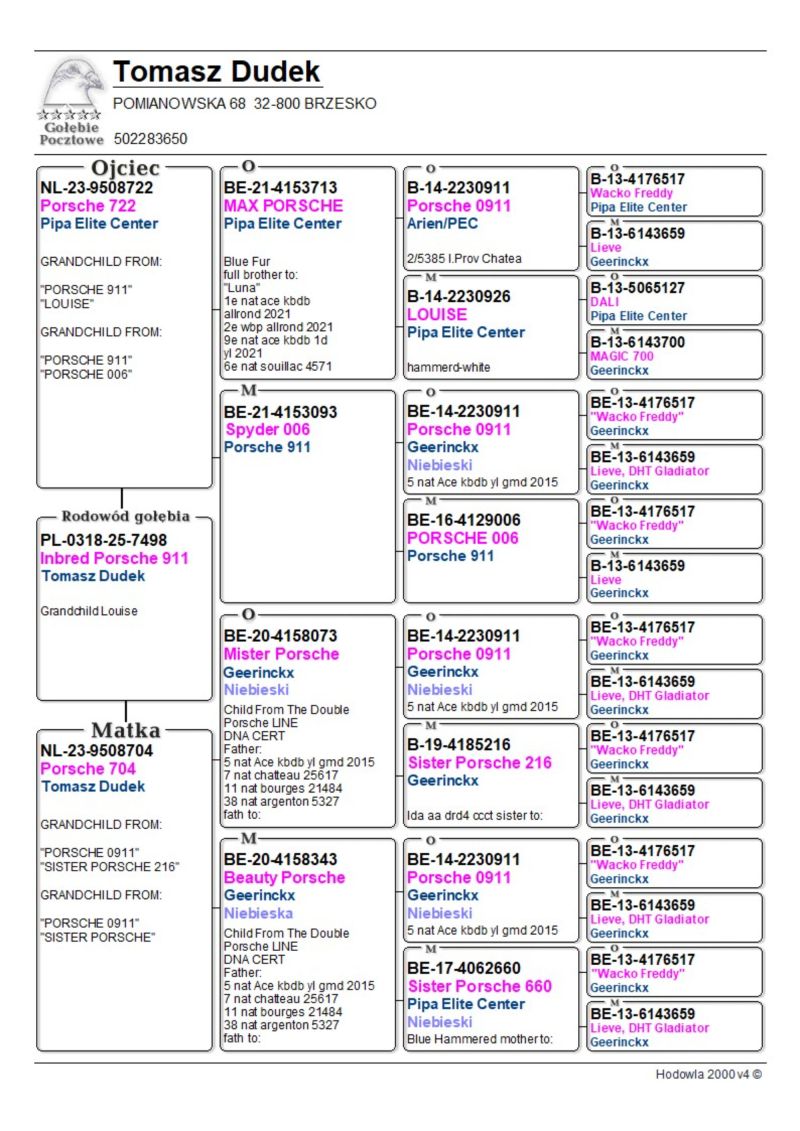 Mamy Państwu do zaoferowania gołębia 7498, Inbred Porsche 911, Louise. Możliwość wykonania badań DNA na koszt kupującego. Więcej informacji pod numerem 502 283 650.