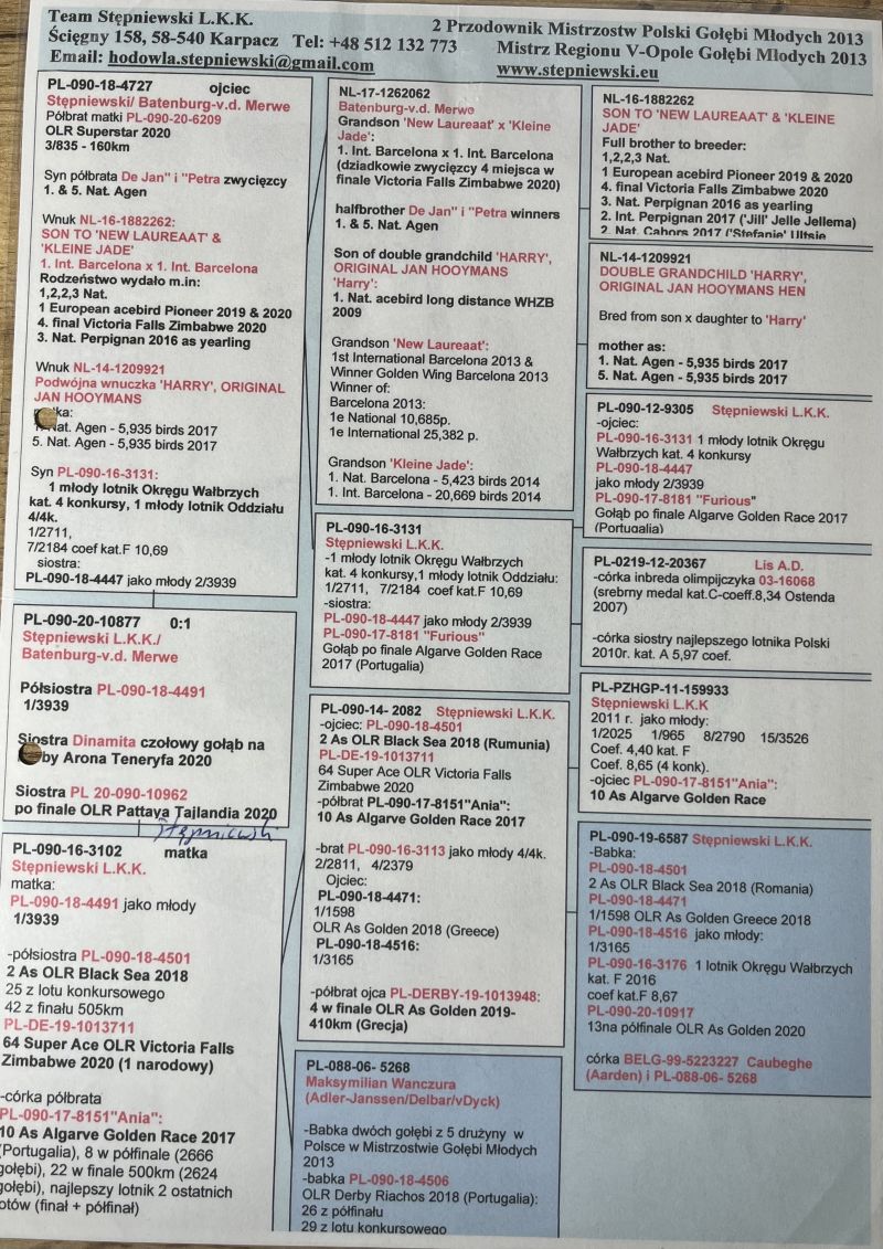 Oryginalny gołąb z hodowli Stępniewski LKK. Szczegóły pochodzenia w rodowodzie. Więcej informacji pod nr tel.: 530131812 **wysyłka kurierem ok. 150 zł