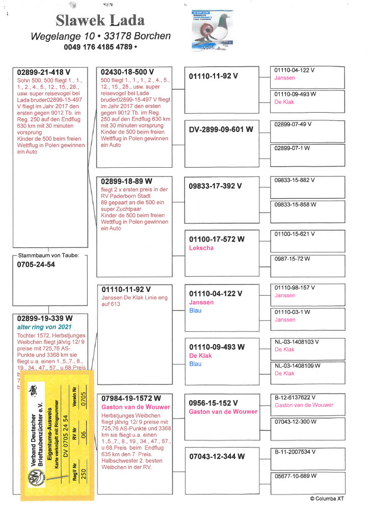Pięknie zbudowana samiczka od kolegi lotującego w DV, Sławka Łady. Bardzo dobra linia gołębi kolegi Sławka. Szczegóły pochodzenia w rodowodzie. Kontakt 503 065 248. Wysyłka przez kuriera. Koszt 100zł. Tylko wpłata na konto. Przy zakupie 3 gołębi wysyłka gratis!