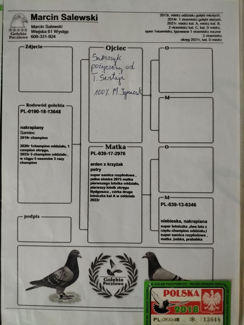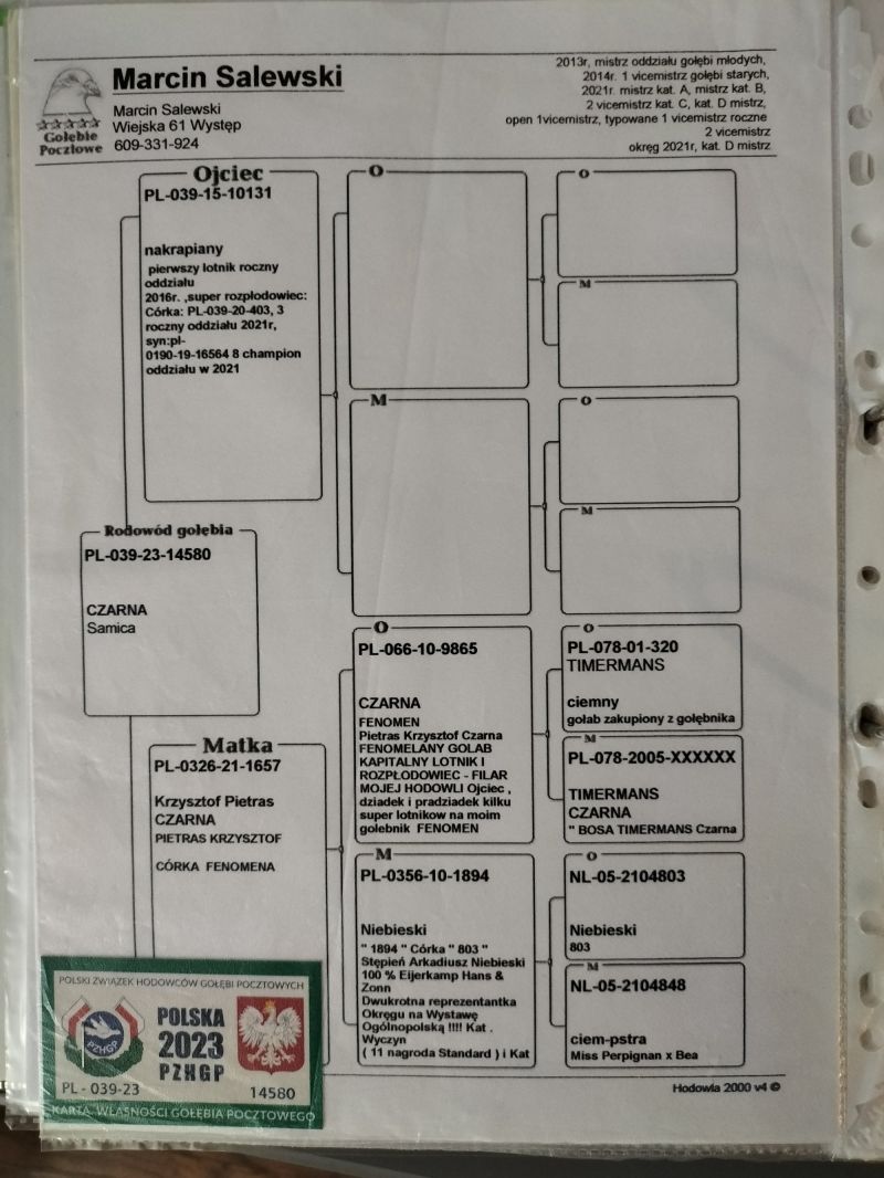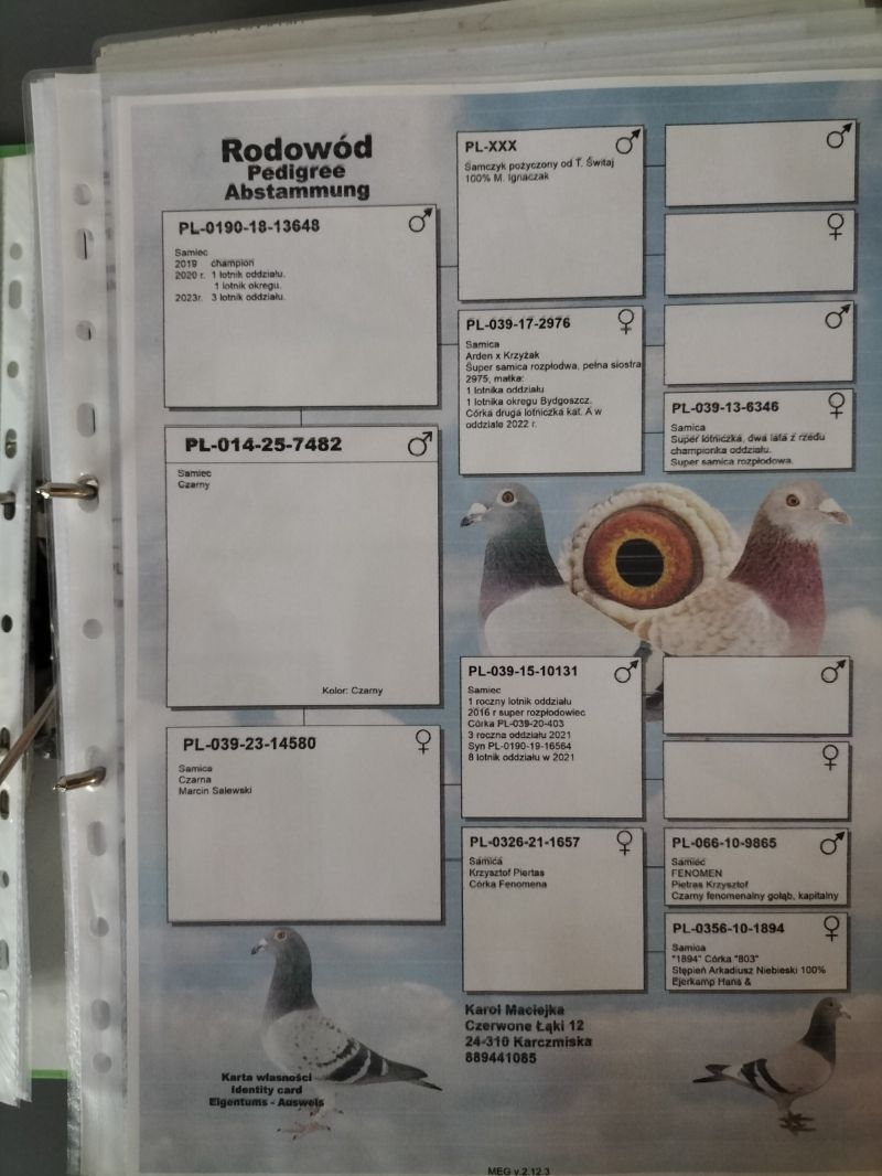 Płeć: samiec Hodowca - rasa: Karol Maciejka Zakończenie: 17.11.2025 godz. 18:18