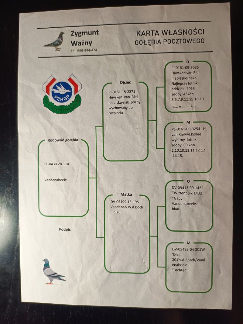 Kontakt: 792175139Opis: Samica odkupiona po ciężkim sezonie na WG Krakus 2020. Jest min. babką PL-0173-23-17684 - 50 z finału i 13 AS (najlepszy z Polskich gołebi) na morderczym WG Kalimanci. Gołąb liczony do 12 drużyny w mistrzostwach FCI (2 najlepsze wyniki z 10 gołebników)