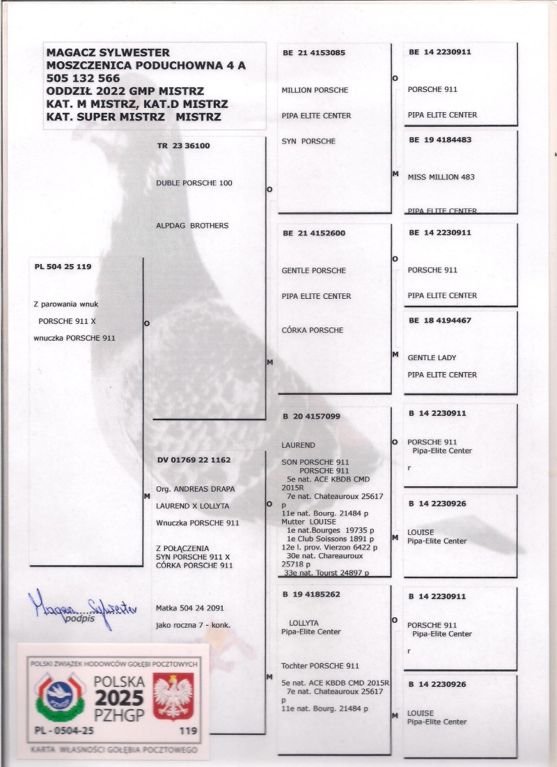 Oryginalny gołąb z hodowli Sylwestra Magacza. Szczegóły pochodzenia w rodowodzie. Więcej informacji pod nr tel.: 505132566