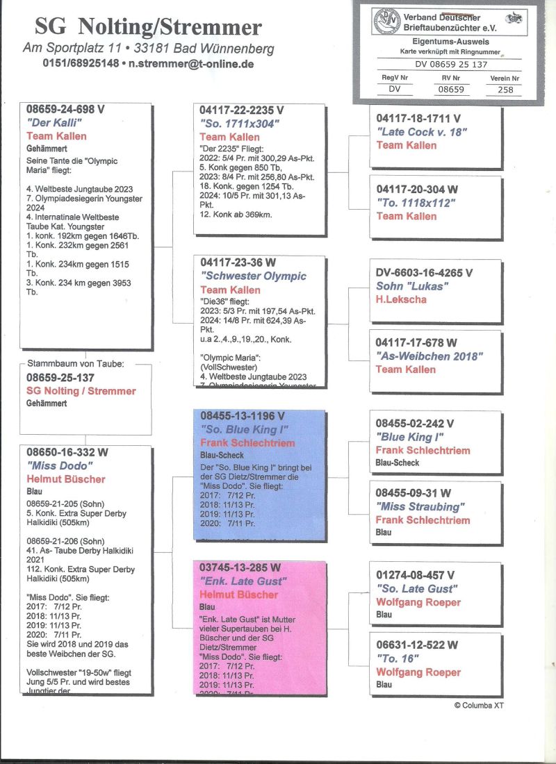 Gołębie ze wspólnego gołębnika GESEKE EDYCJA I 2025,.Gołębie brały udział w 4 lotach konkursowych i LOT FINAŁOWY 300KM,szczegóły pochodzenia w rodowodzie ,Więcej informacji pod nr tel.: 603 312 976, Wyniki dostępne klikając w link ,transport gołębi po wcześniejszej wpłacie pieniążków na konto .Gołębie będą rozwożone po 10.11.2025 ,koszt transportu 1-3szt-120zł,3-6szt-140zł płatne kurierowi.