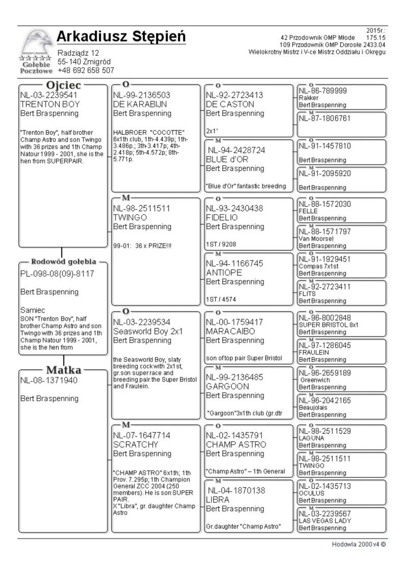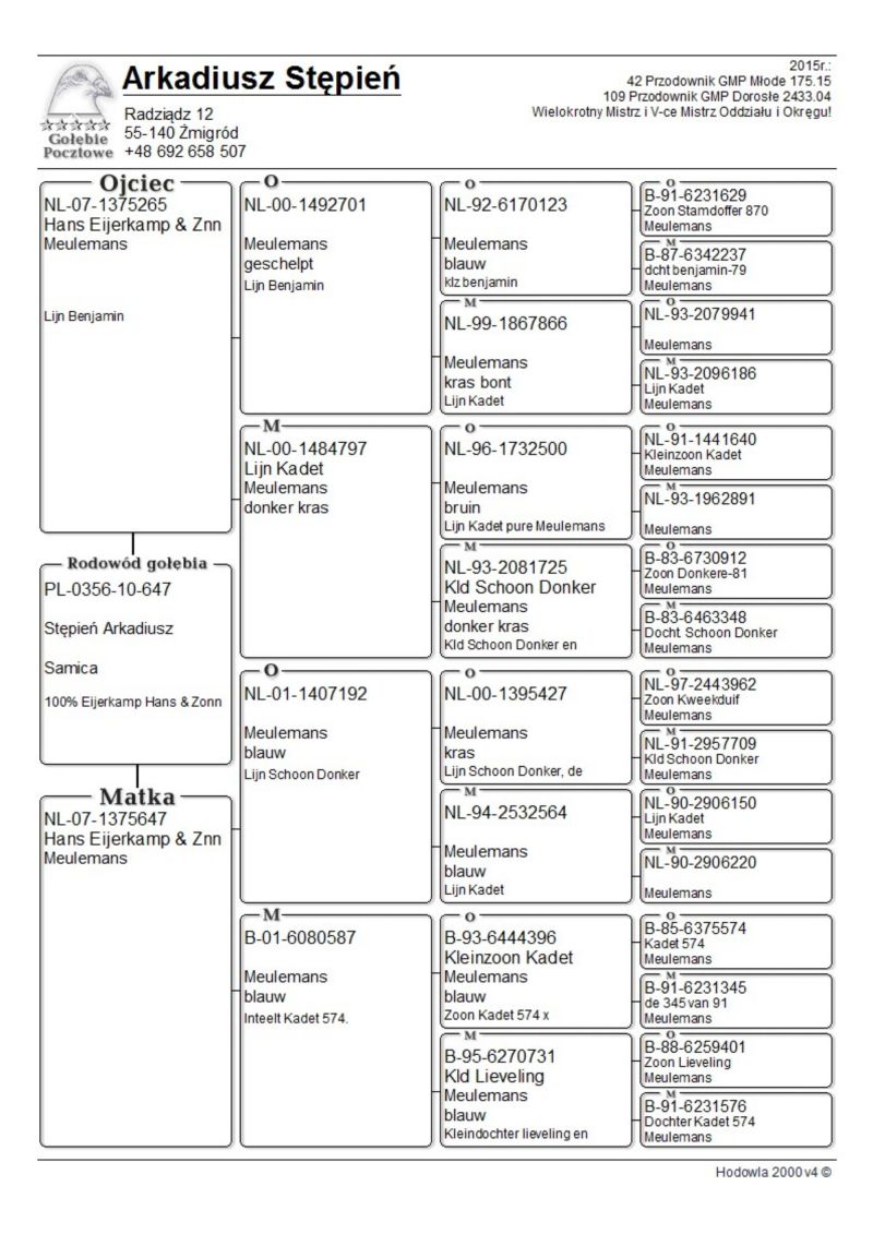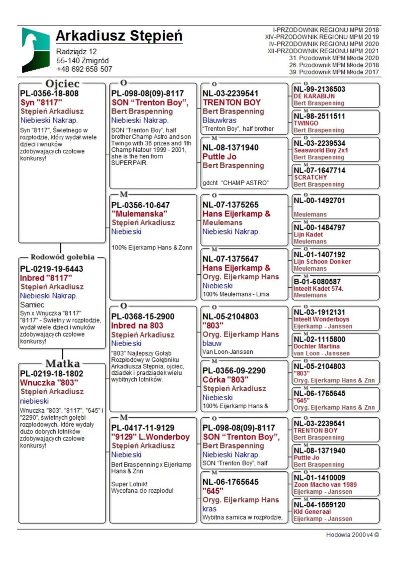 Oryginalny gołąb z hodowli Arka Stępnia. Szczegóły pochodzenia w rodowodzie. Odbiór osobisty lub na Wystawie Ogólnopolskiej. Proszę o kontakt telefoniczny przed zalicytowaniem. Więcej informacji pod nr tel.: +48 692 658 507