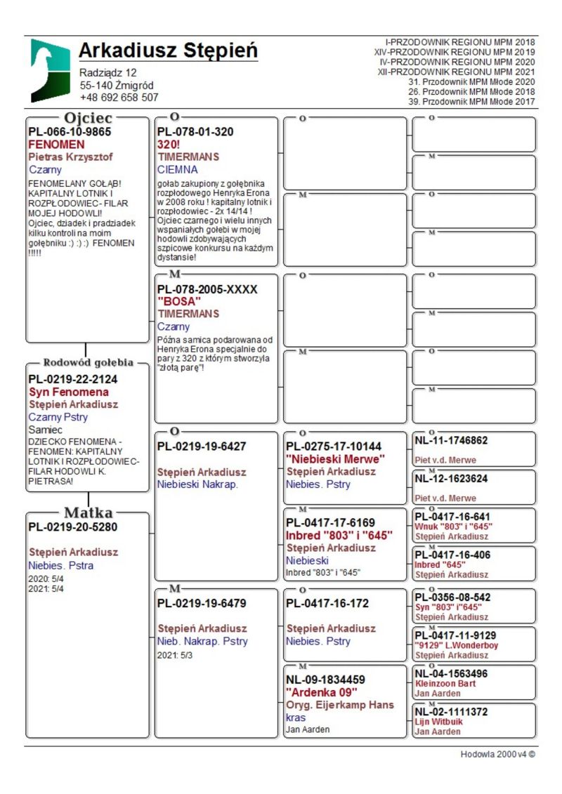Oryginalny gołąb z hodowli Arka Stępnia. Szczegóły pochodzenia w rodowodzie. Odbiór osobisty lub na Wystawie Ogólnopolskiej. Proszę o kontakt telefoniczny przed zalicytowaniem. Więcej informacji pod nr tel.: +48 692 658 507