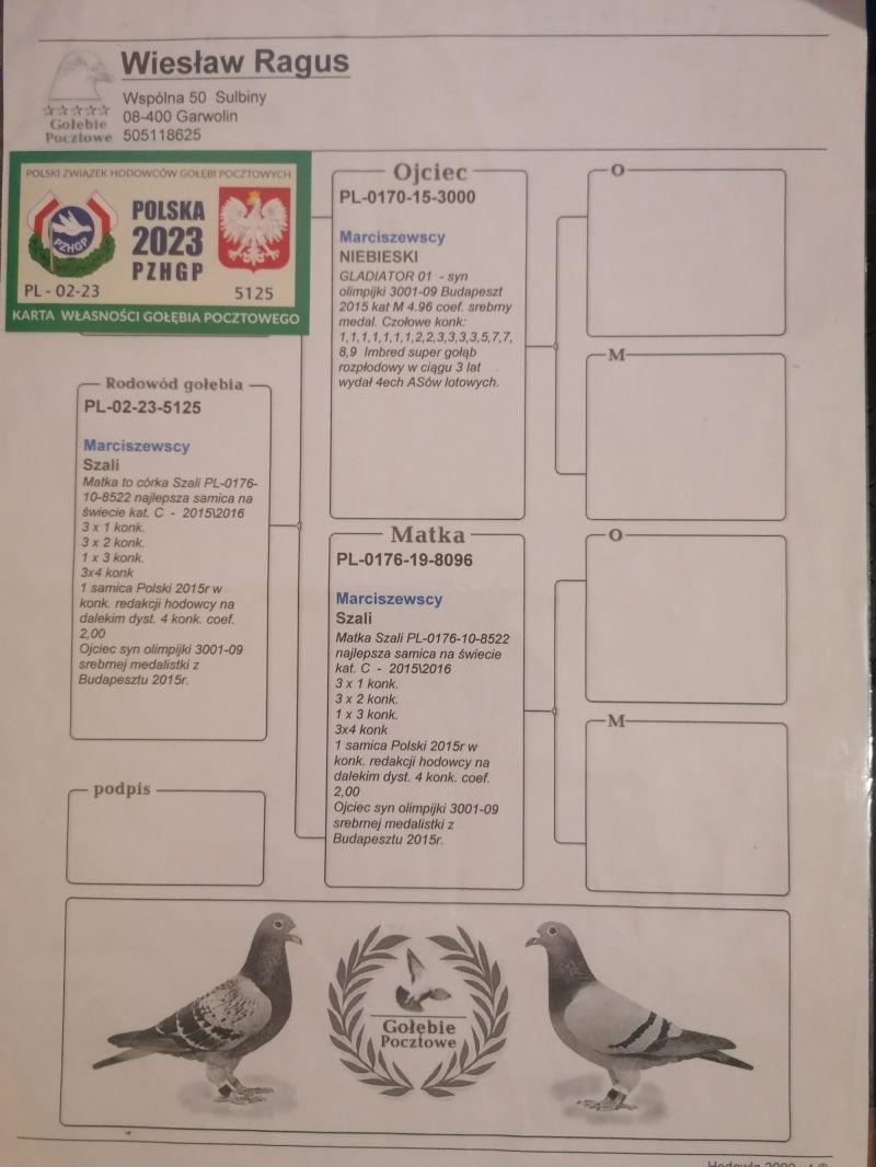 Płeć: samiec Hodowca - rasa: Oryg Czuba Zbigniew Zakończenie: 19.11.2025 godz. 18:32
