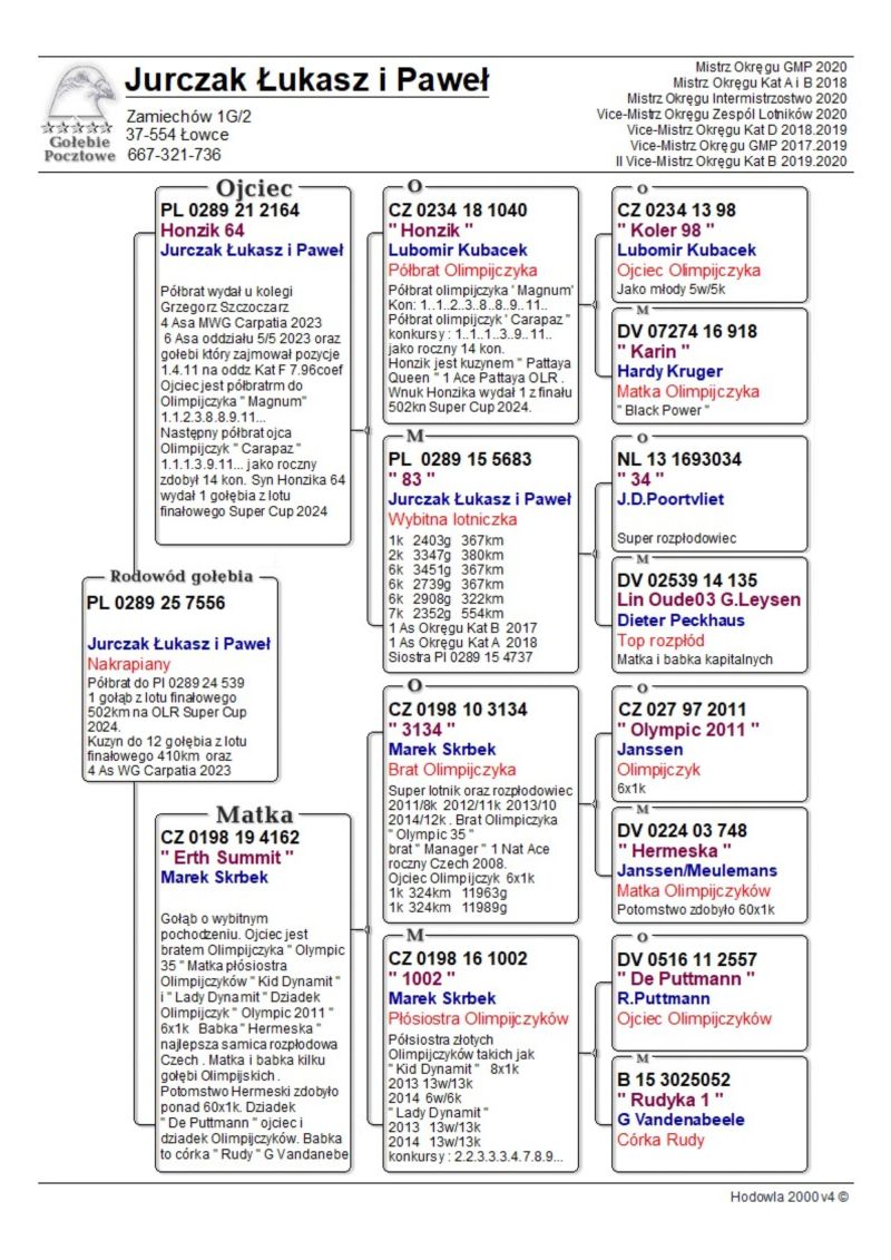 Oryginalny gołąb z hodowli Jurczak Łukasz i Paweł. Szczegóły pochodzenia w rodowodzie i nr.tel. 667321736 lub 697672645