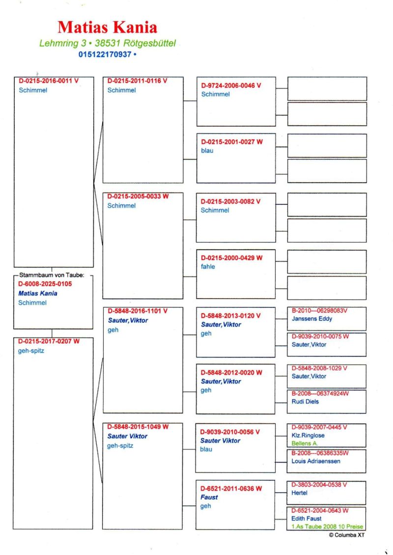 Szczegóły pochodzenia w rodowodzie. Pełne wyniki gołębia w sezonie lotowym na stronie: