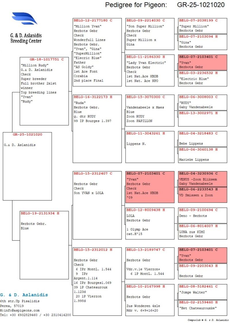 Szczegóły pochodzenia w rodowodzie. Pełne wyniki gołębia w sezonie lotowym na stronie: