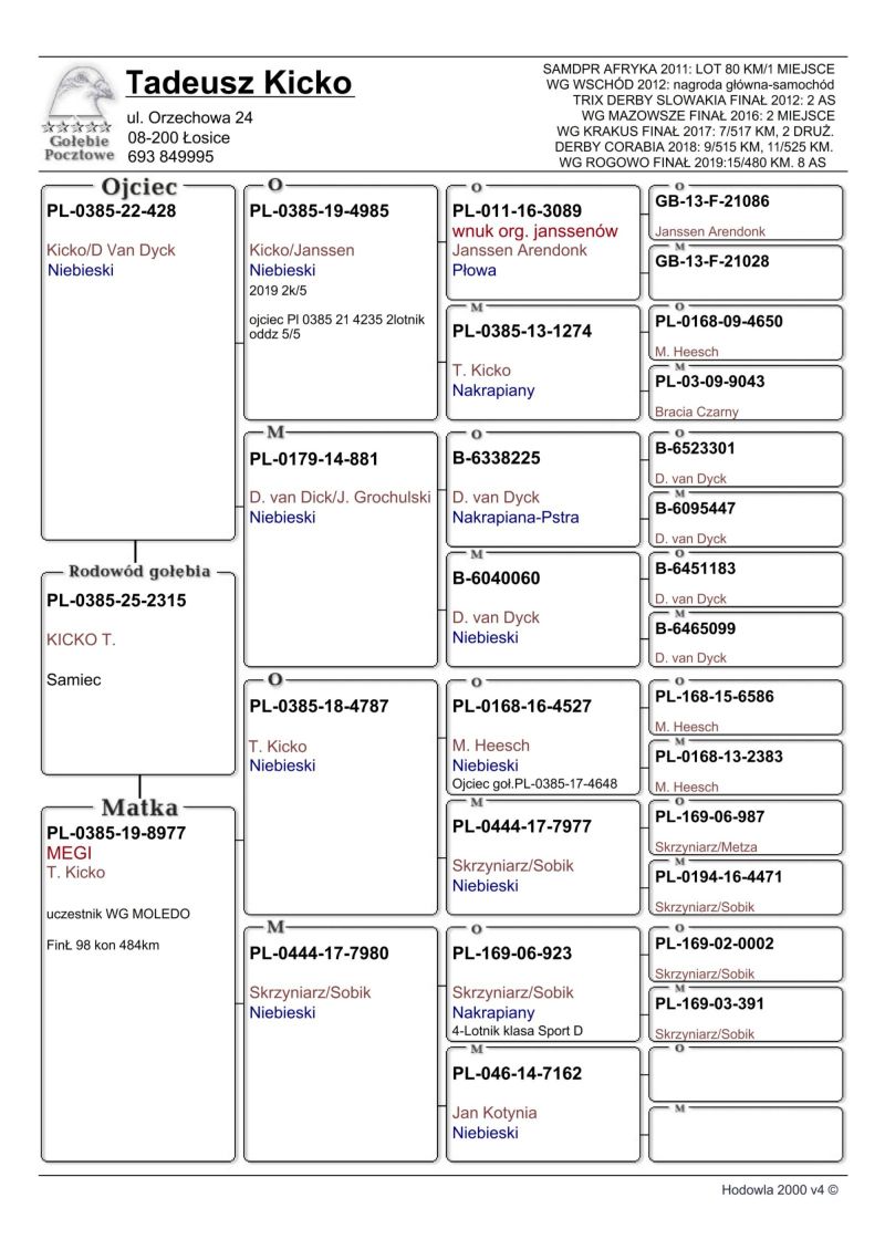Szczegóły pochodzenia w rodowodzie. Pełne wyniki gołębia w sezonie lotowym na stronie: