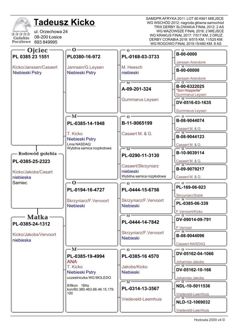 Szczegóły pochodzenia w rodowodzie. Pełne wyniki gołębia w sezonie lotowym na stronie: