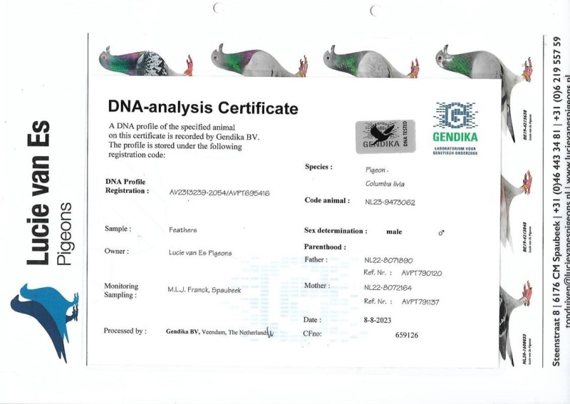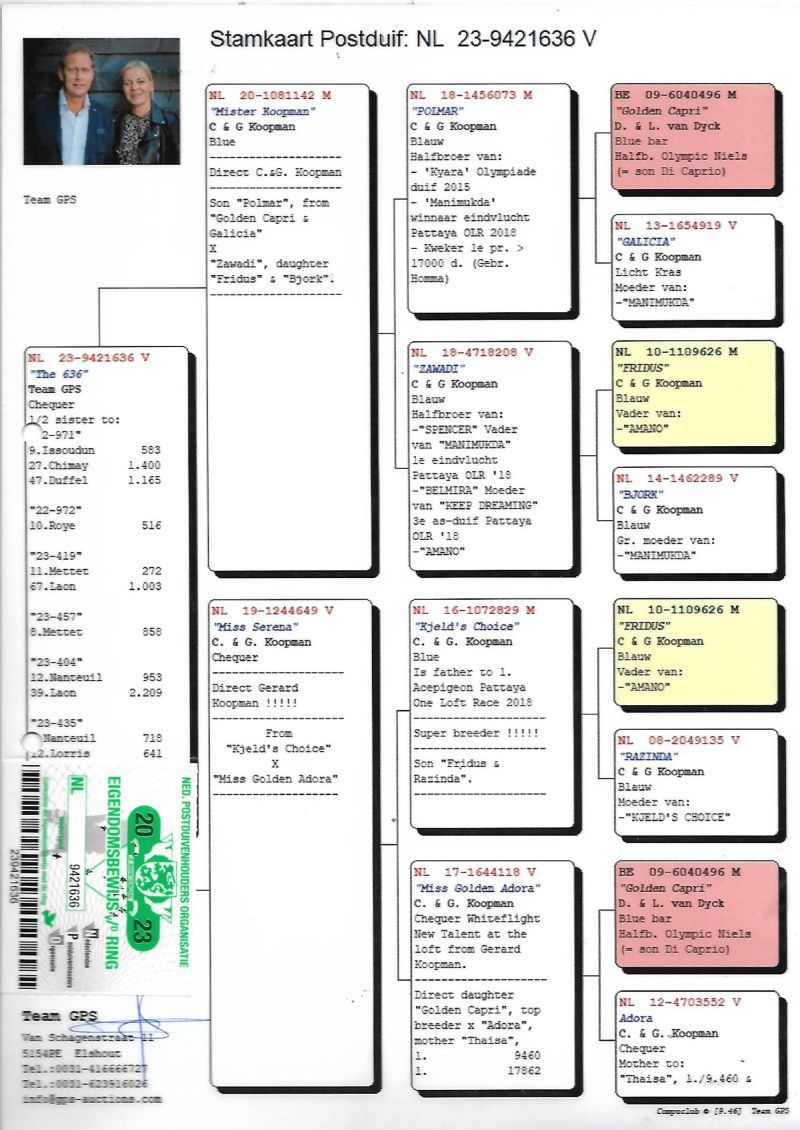 NL-18-1734144 Oryg. Anneke Pierre Faes podwójny wnuk "Belli" 100% Koopman