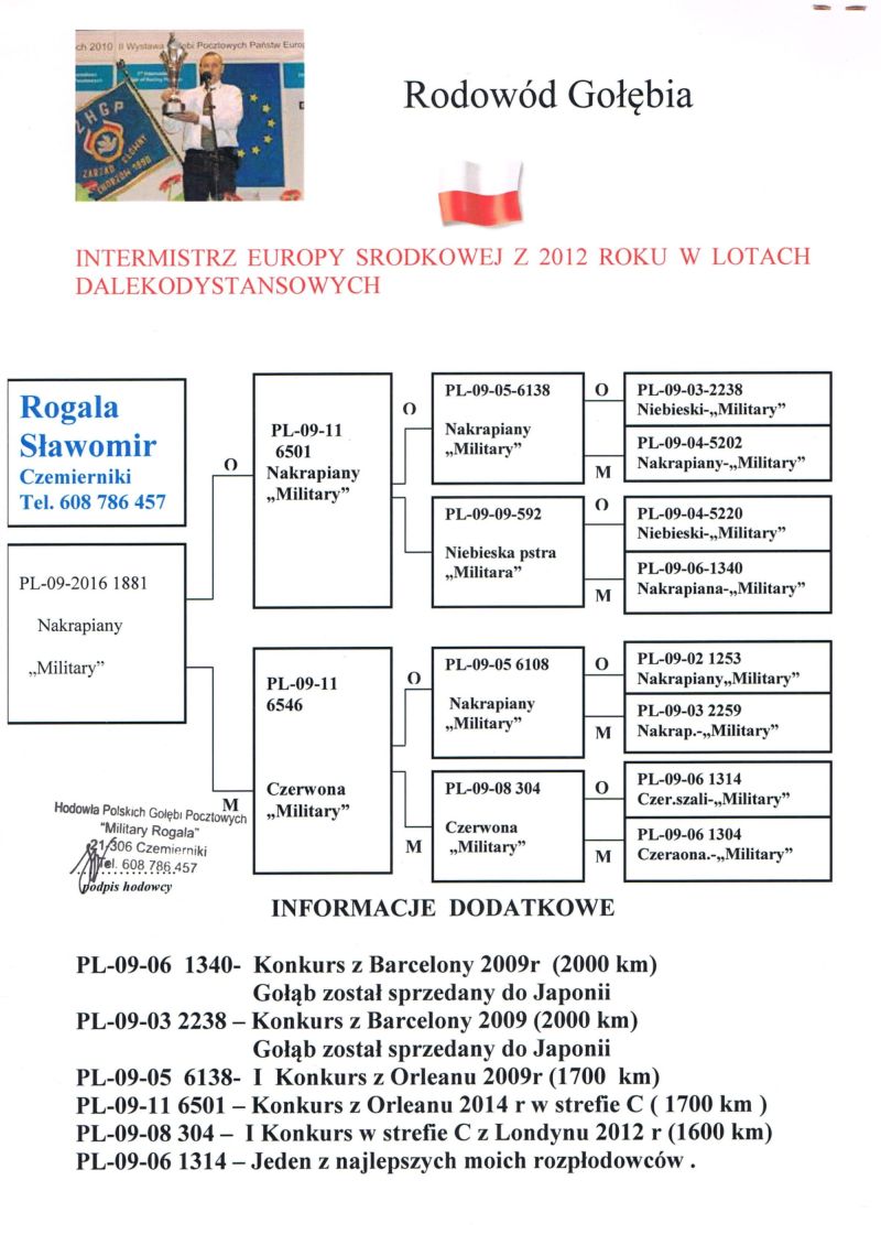 Moje stado opiera się na ptakach które w latach 2012-2016 pozwoliły mi wygrywać w oddziale i okręgu w różnych kategoriach, lecąc w 2 różnych oddziałach 036 i 0394. Najważniejsze osiągnięcia to Mistrz okręgu kat. C 49 miejsce w Polsce, II vice Mistrz okręgu kat. B i młode, Super Mistrz Oddziału. Wszystkie wyniki dokładnie opisane na końcu aukcji. Do lotowania wróciłem „na chwilę” w 2021 r. na nowym miejscu zamieszkania w bardzo ciężkim sezonie 3 x vice Mistrz Oddziału gołębi młodych. 2,5,11,16,19,22,23,27,28,40 pozycje w klasyfikacji lotników. 3 x Mistrz sekcji oraz XIII przodownika okręgu Bydgoszcz. Zacząłem też lotowanie na WG wysyłając po kilka sztuk na sezon.