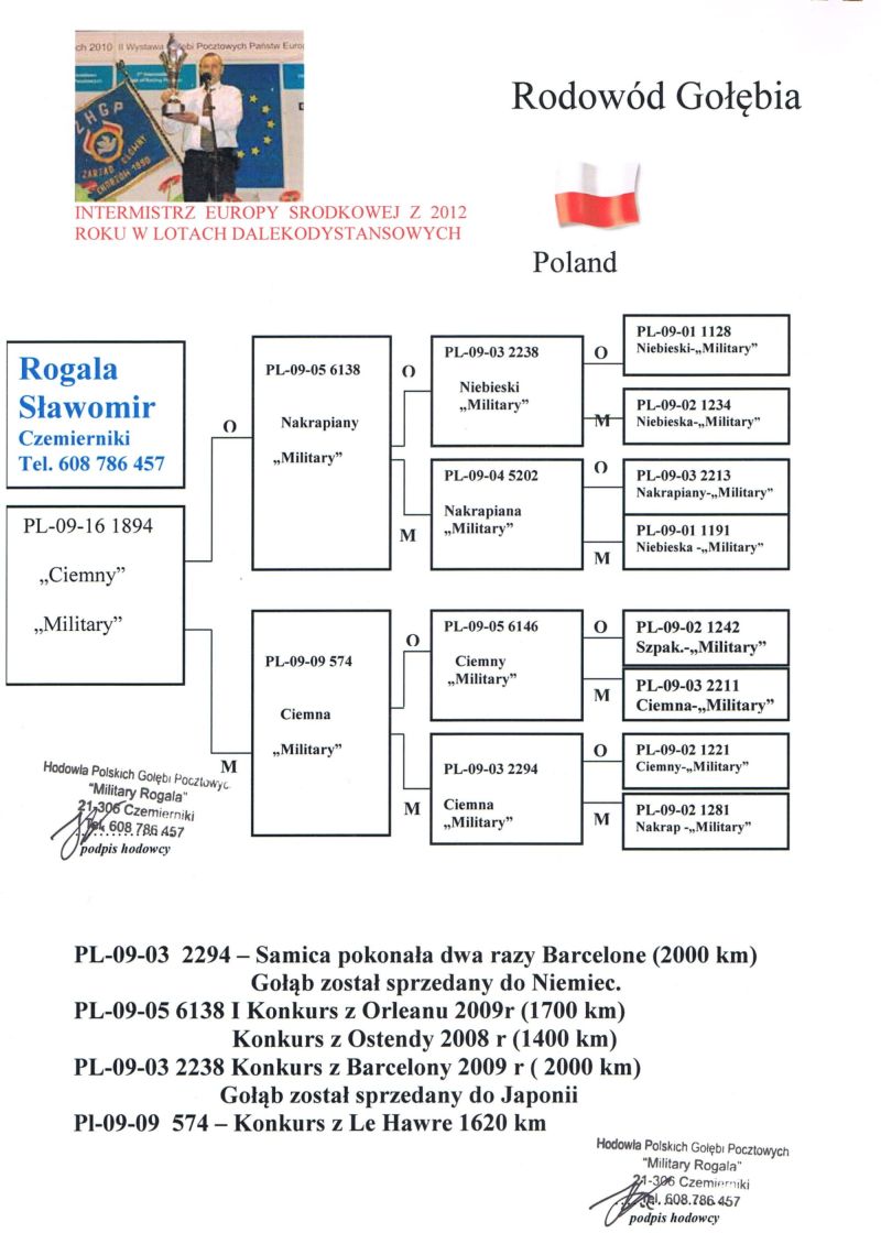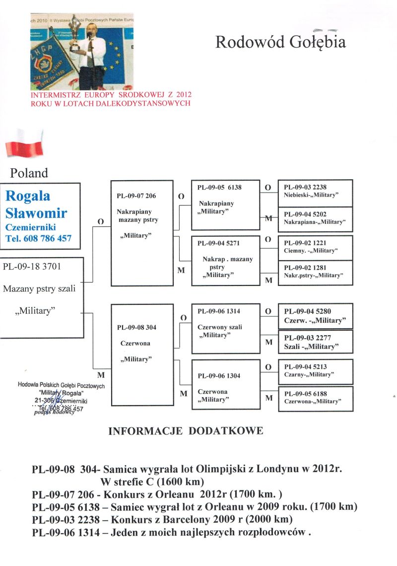 2021 – konkursy na finałach na WG Krakus i Super Gołąb, 2022 - 14 miejsce Extra Finał 518 km WG Super Gołąb, 2023 – 11 miejsce Finał 502 km WG Bojano. 2024 - 4 miejsce Półfinał WG Tatry, WG Bojano 4 miejsce lot konkursowy, 34 miejsce Półfinał, 17 miejsce Drużyna, 54, 78, 79, 81 lotnik. Po moich gołębiach w 2024 ptaki wylatały: po pełnej parze 68 miejsce Finał Super Gołąb, po samcu 8 miejsce Extra Finał WG Warmia, po samicy 16 miejsce Finał WG Roztocze, po samcu 3 AS długi dystans i 7 miejsce Extra Finał MWG Giewont. 2025 31 lotnik Derby Carmelo Yupi, 43 miejsce Extra Finał WG Tatry, 12 miejsce Finał WG Carpatia, 40 miejsce Finał WG Krakus (56 seria na 849 hodowców 2/2 w konkursie z 3 wysłanych ptaków), po samicy ode mnie 24 miejsce Finał Corabia One Loft Race. **********************