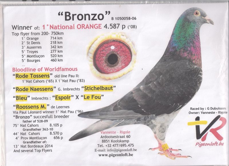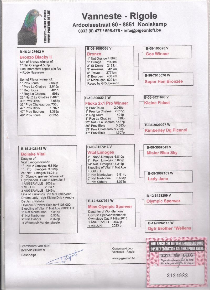 NL-16-1500500 Oryg. Pigeon World 100% Jan Hooymans Inbred na "Harry"