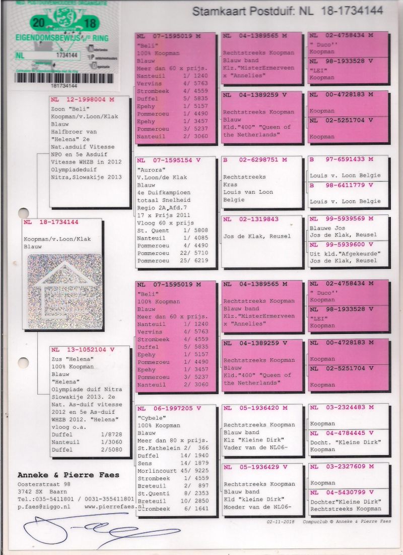 NL-18-1734144 Oryg. Anneke Pierre Faes podwójny wnuk "Belli" 100% Koopman