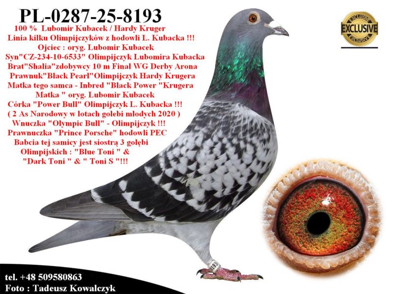 AUKCJA PROMOCYJNA ROCZNIKA 2025 (Cena obowiązuje wyłącznie na tej aukcji) Profesjonalna hodowla z wieloletnim doświadczeniem, posiadająca w swoim stadzie materiał najwyższej światowej klasy, wywodzący się od takich hodowców jak: Jan Hooymans, Gerard Koopman, Mike Ganus, Tjeerd & Jouke Elzinga, Gino Clicque, Jos Vercammen, Jelle Roziers, Bart Geerinckx, Batenburg – v/d Merwe, Altmiks – Pigeons, Jo & Florian Hendriks, Kornelis Winner Loft – linia „Romario”, W & F Ebben, Bert Braspenning, Dirk van den Bulck, Peter v/d Merwe, Jan van de Pasch, Van Elsacker-Jepsen, Roger Desmet – Matthijs, Arie Dijkstra, Leo Heremans, Pieter Veenstra, Gaby Vandenabeele, Karl-Heinz Wichert, Hardy Kruger, Helmut & Alfons Klaas, Gebr. Janssen. Najwyższej klasy materiał hodowlany – najlepsze linie danych Hodowców. Wszystkie wylicytowane gołębie będą dostarczane firmą kurierską.
