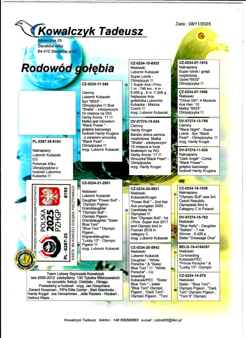 Płeć: młody gołąb Hodowca - rasa: Tadeusz Kowalczyk Zakończenie: 21.11.2025 godz. 20:36