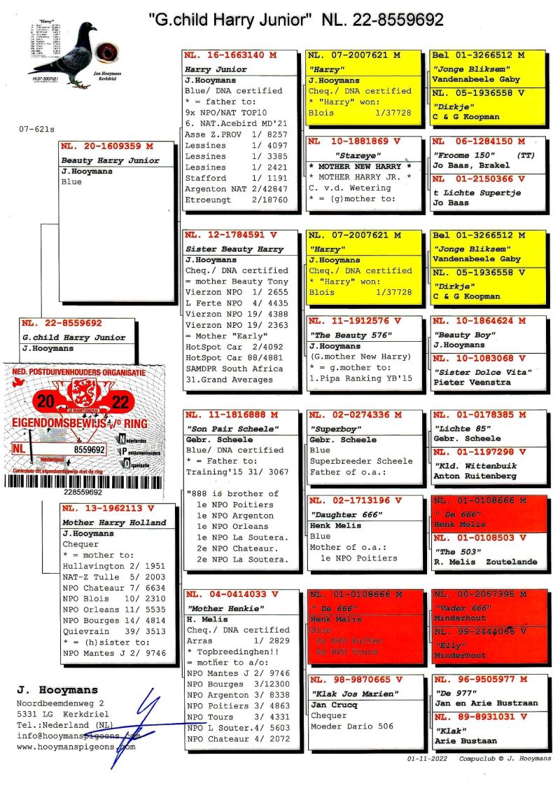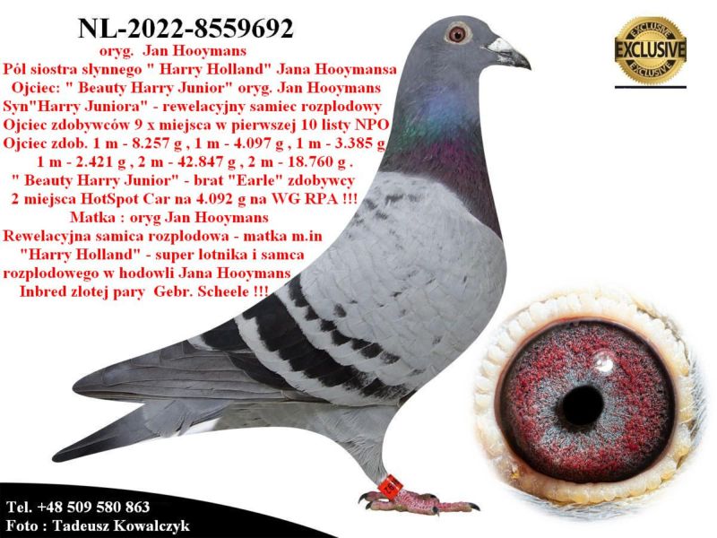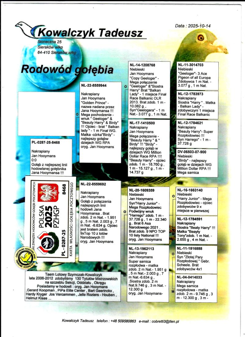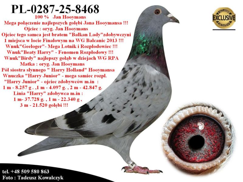 PL-0287-25-8468 Unikat - połączenie najlepszych gołębi z hodowli Jana Hooymansa