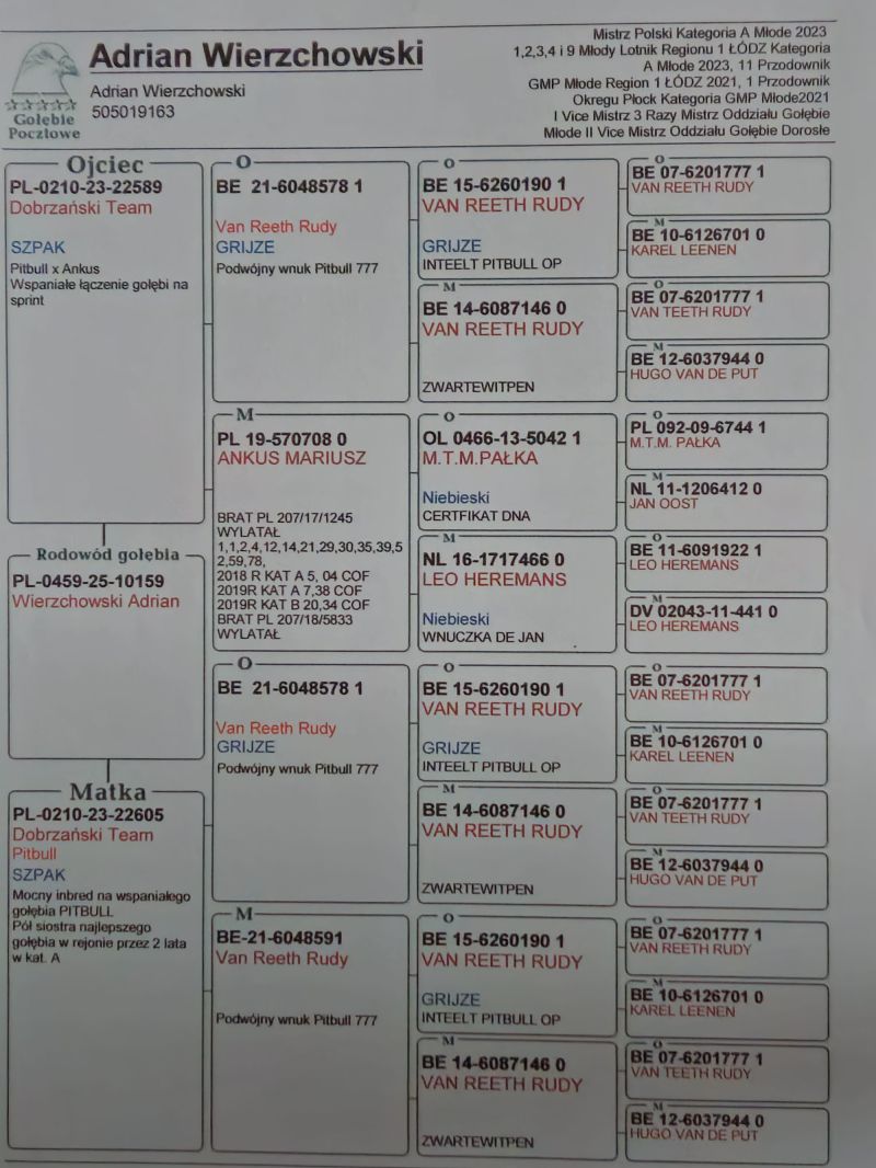 Płeć: młody gołąb Hodowca - rasa: Wierzchowski Adrian Zakończenie: 20.11.2025 godz. 17:44