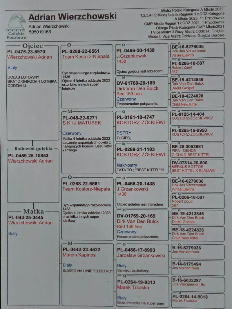 Płeć: młody gołąb Hodowca - rasa: Wierzchowski Adrian Zakończenie: 20.11.2025 godz. 17:42