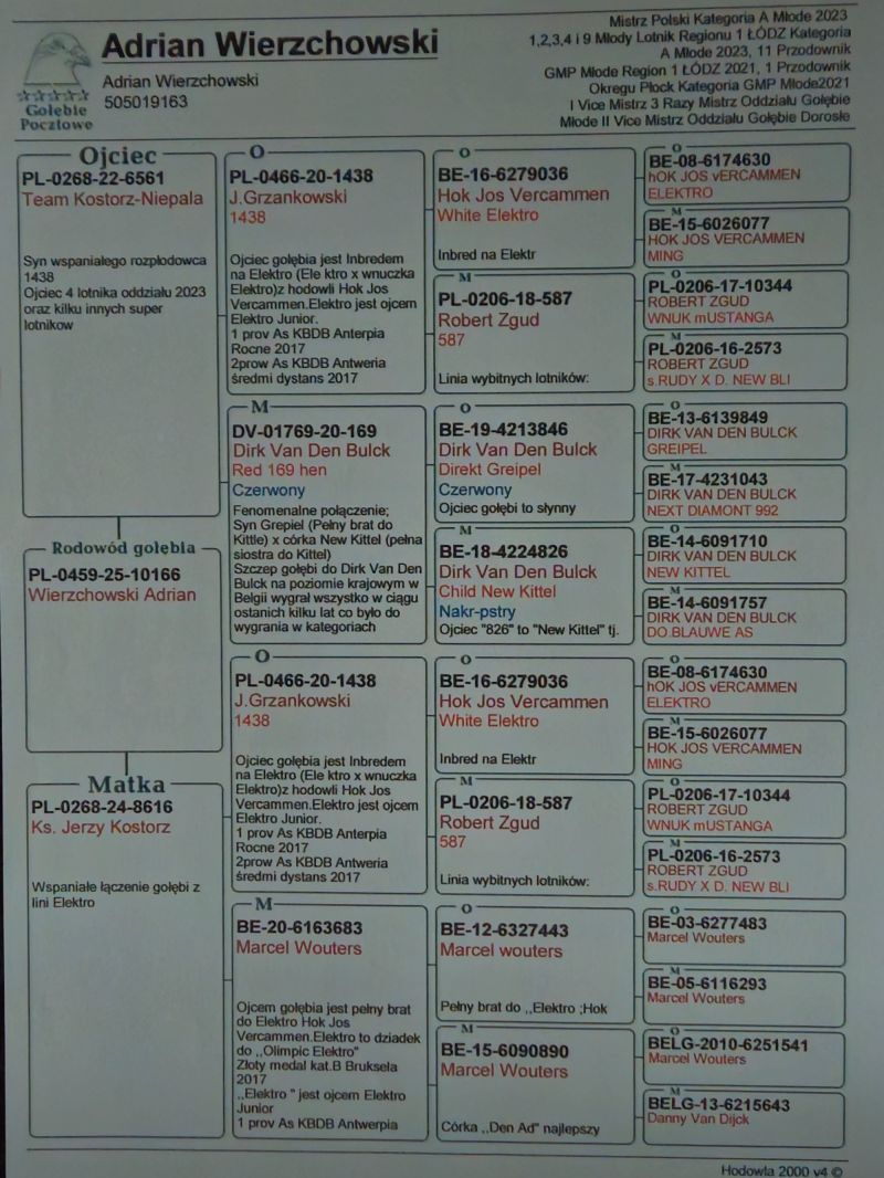 Płeć: młody gołąb Hodowca - rasa: Wierzchowski Adrian Zakończenie: 20.11.2025 godz. 17:36