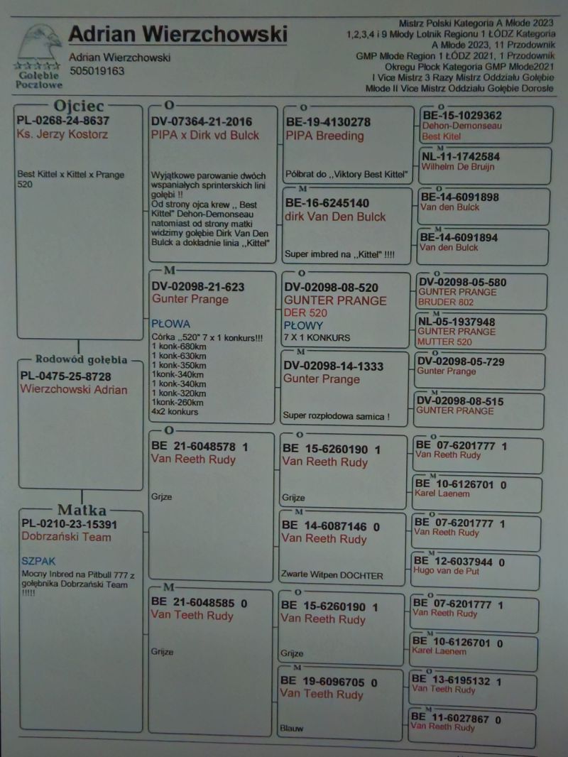 Płeć: młody gołąb Hodowca - rasa: Wierzchowski Adrian Zakończenie: 20.11.2025 godz. 17:32