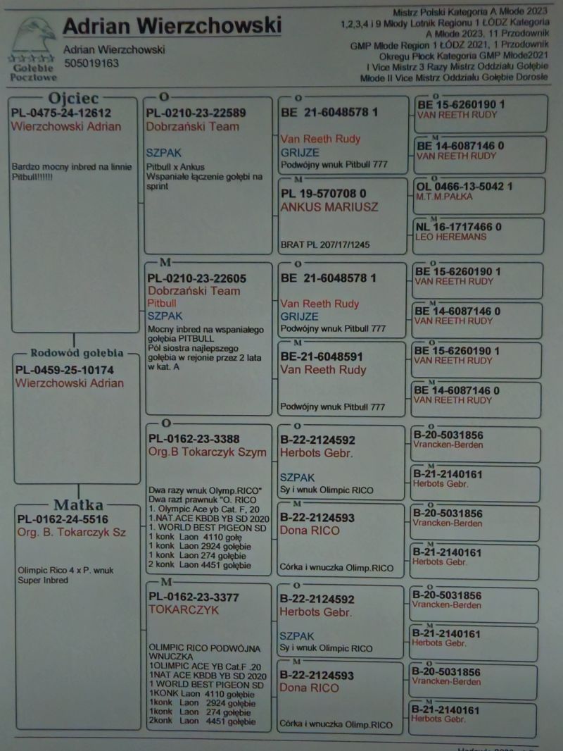 Płeć: młody gołąb Hodowca - rasa: Wierzchowski Adrian Zakończenie: 20.11.2025 godz. 17:28
