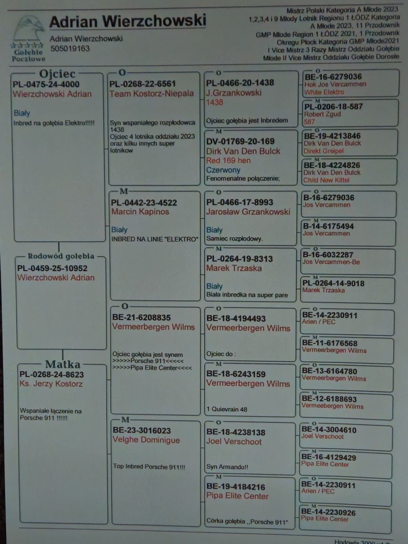 Płeć: młody gołąb Hodowca - rasa: Wierzchowski Adrian Zakończenie: 20.11.2025 godz. 17:26