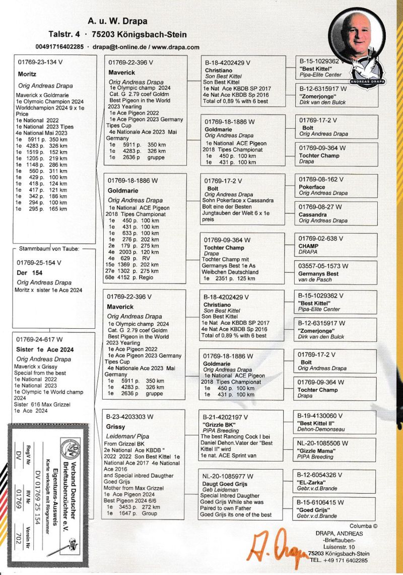 **UWAGA podbicie na tej aukcji wynosi 50 zł**Oryginalny gołąb z hodowli Andreasa Drapy. Szczegóły pochodzenia w rodowodzie. Oferowany gołąb to prawodopodobnie SAMIEC. Gołąb znajduje się już w Polsce u kolegi Roberta Grochowskiego. Gołębia można obejrzeć w Urbanowicach woj. opolskie, po wcześniejszym kontakcie telefonicznym. Sprzedający może zorganizować transport gołębia. Koszt przesyłki do najbliższego większego miasta obok miejscowości kupującego to około 70-100zł. Więcej informacji pod numerem 600133330