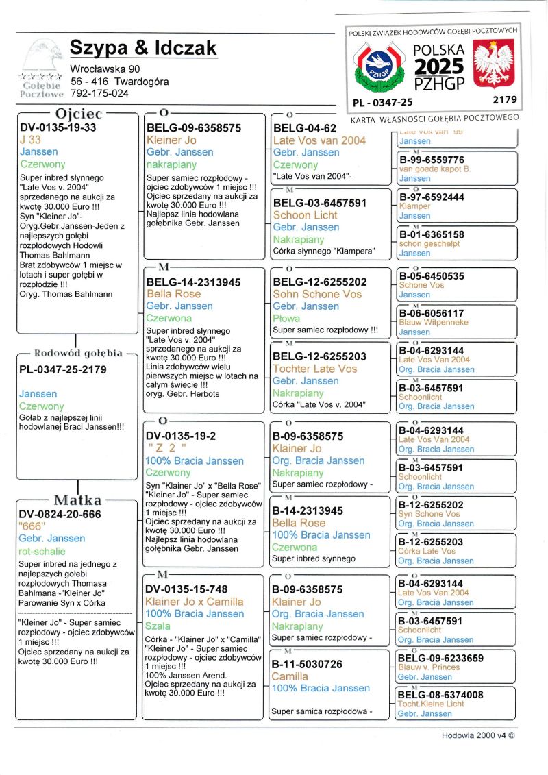Profesjonalna hodowla z wieloletnim doświadczeniem, posiadająca w swoim stadzie materiał najwyższej światowej klasy. Więcej informacji w załączonych materiałach oraz pod nr tel. 792-175-024 Oferowany gołąb to prawdopodobnie SAMIEC. Płeć pisana orientacyjnie Wysyłka 100 zł