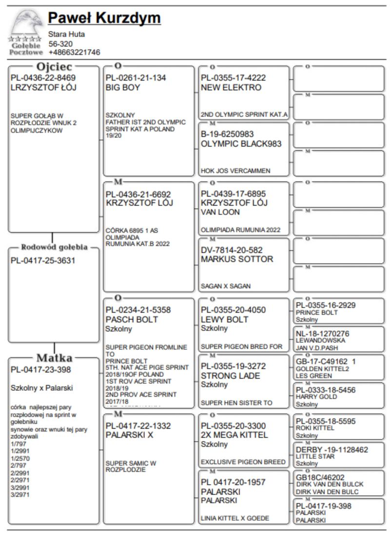 Płeć: młody gołąb Hodowca - rasa: PAWEŁ KURZDYM Zakończenie: 21.11.2025 godz. 18:20