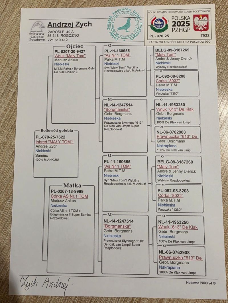PL-070-25-7622 - 100% Mariusz Ankus! Podwójny Wnuk AS 1 TOM! Super Inbred MAŁY TOM! Unikat!