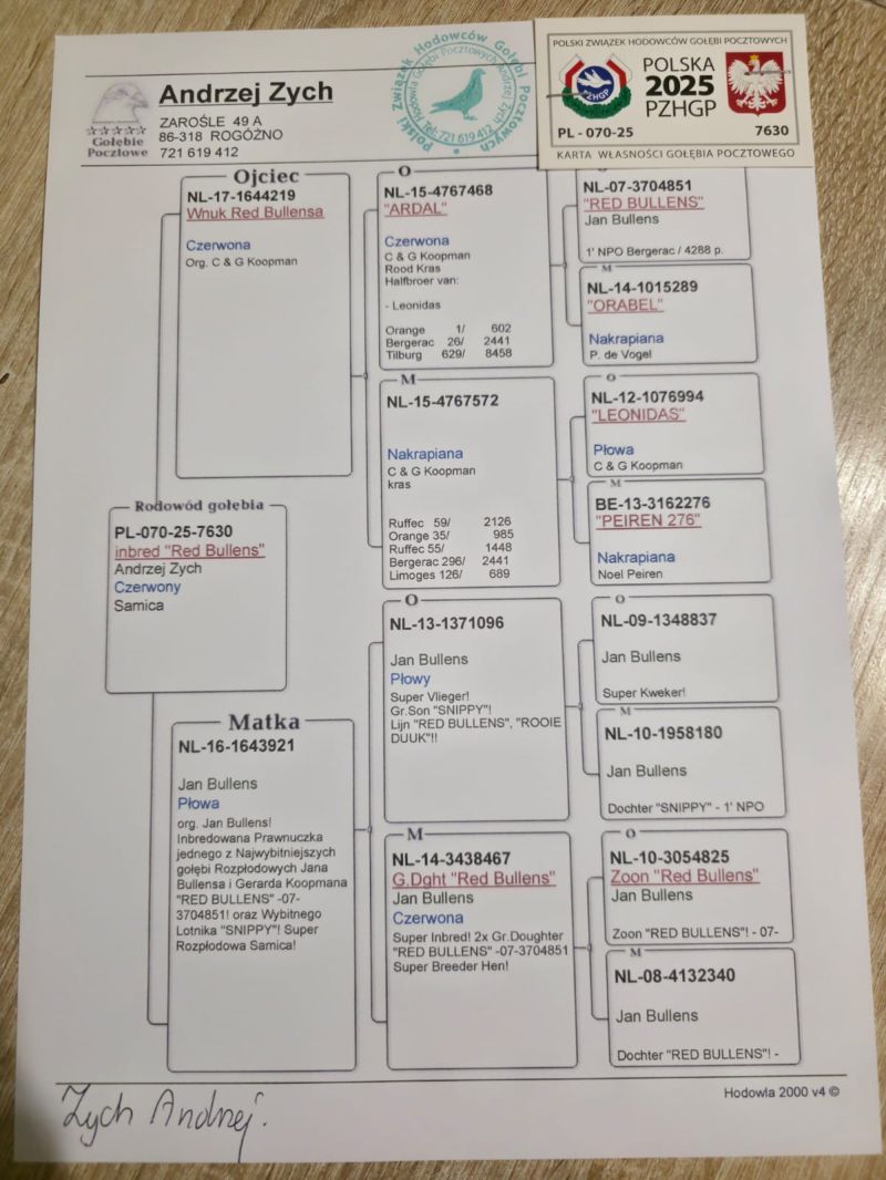 PL-070-25-7630 - 100% Koopman-Bullens! Super inbred na Słynnego RED BULLENS! Unikat!