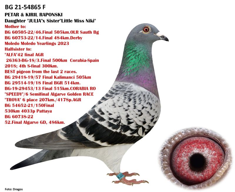Oryginalny gołąb z hodowli Petar & Kiril Raponski. Szczegóły pochodzenia zamieszczone w rodowodzie. Gołąb posiada pełną dokumentację! Rodowód + Karta własności! Więcej informacji pod numerem telefonu: 721 619 412