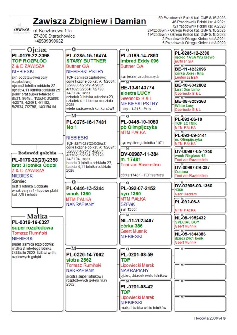 Syn jednego z podstawowych samców rozpłodowych 2398! Super rodzina gołębi w lotach młodych i kat. A/B. Odbiór osobisty lub dostawa po ustaleniu kosztów (w zależności od dostępności kurierów 150-200zł) Więcej szczegółów w rodowodzie lub 509898632